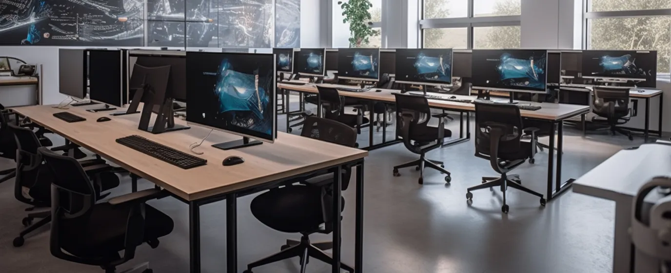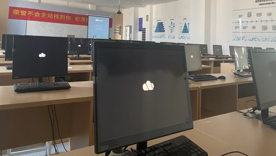 高职校中计算机机房,提供丰富的桌面教学环境,按需提供算力和软件应用